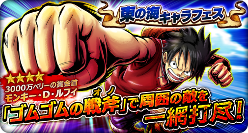 ゲーム内では強力キャラクターが手に入る“東の海キャラフェス”を開催中。★4の“モンキー・D・ルフィ”や“ジュラキュール・ミホーク”、“アーロン”などの東の海で活躍したキャラクターが多数登場している。