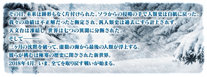 舞台は人類史滅亡後の新世界。永久凍土の極寒の地より、新たな物語が始まる。