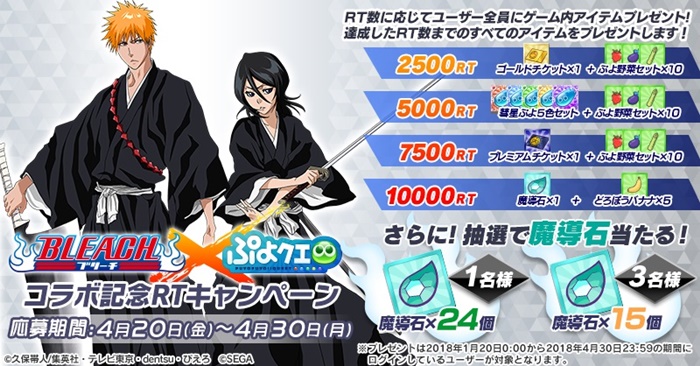 また、コラボ開始を記念して、公式Twitter(@puyoquest)にてRTキャンペーンが実施される。