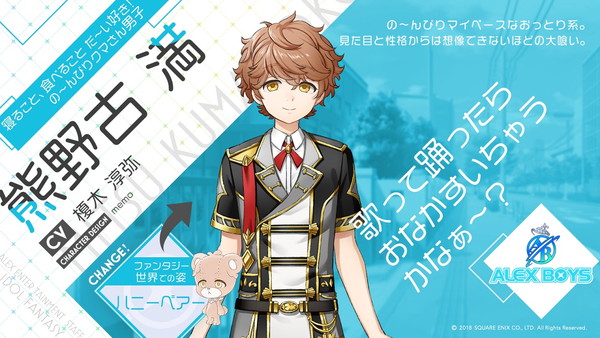 スクウェア・エニックスが贈る“トキメキの魔法をかけるファンタジー×アイドル育成ゲーム”『IDOL FANTASY』よりメジャーデビューを目指すアイドルの研究生たちで構成された“ALEX BOYS”のメンバーを公開した。また、キャラクター公開に合わせ“Twitterフォロー&RTキャンペーン第6弾”を公式Twitterにて開始する。