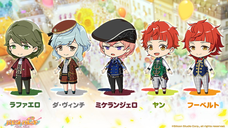今回公開されたのは、ラファエロ(CV.浪川大輔)、ダ・ヴィンチ(CV.井口祐一)、ミケランジェロ(CV.KENN)、ヤン(CV.代永 翼)、フーベルト(CV.阿部 敦)の5人。同時に、“正装”姿のSDキャラクターも公開された。