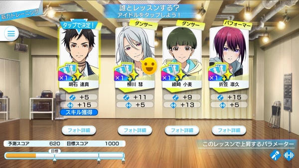 “レッスン”では、アイドル活動で結果を残すため歌唱力、筋力などを鍛えていく。“レッスン”はひとりでもみんなと一緒でも行うことができます。メンバーの組み合わせによって成果が変わることも。