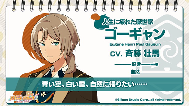 『パレットパレード』ゴッホ(CV.内田雄馬)、ゴーギャン(CV.斉藤壮馬)ら9人のサンプルボイス公開! “印象派”キャラクターの“正装”姿も