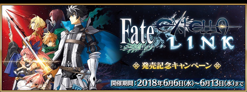 本キャンペーンでは、『Fate/EXTELLA』の続編である『Fate/EXTELLA LINK』が明日 6月7日(木)より発売されることを記念して、『FGO』内で 3 つのキャンペーンが6月 6日(水)から6月13日(水)までの8日間、『Fate/EXTELLA LINK』発売記念ピックアップ召喚(日替り)が6月 6日(水)から6月20日(水)までの15日間開催される。