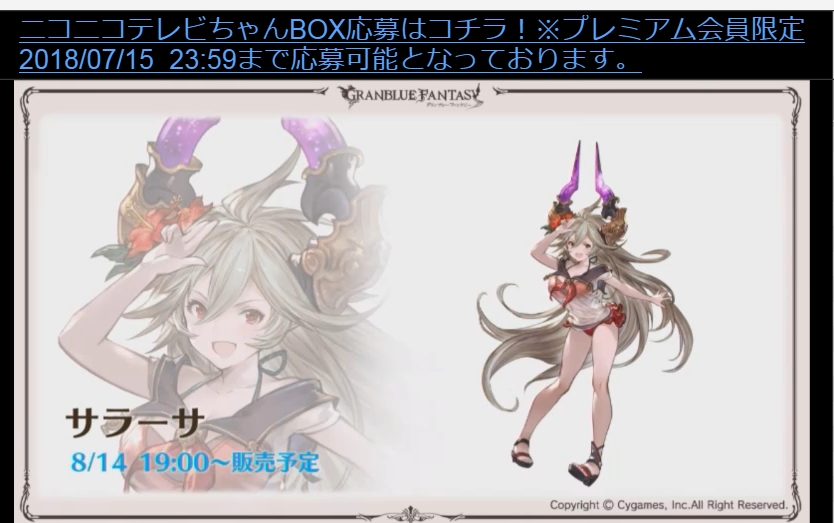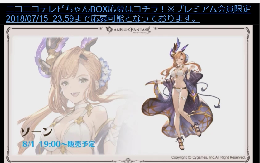 “グラブル生放送 in グラブルサマーフェス大阪”にて、『グランブルーファンタジー』で登場する2018年水着バージョンキャラクターが先行公開された。十天衆の水着スキンの販売も決定した。