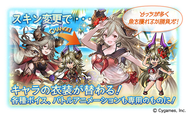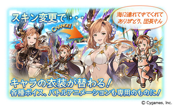 『グランブルーファンタジー』より、7月24日(火)19:00より期間限定で“エターナルズ・サマーバケーションスキンセット”が販売されることが明らかになった。
