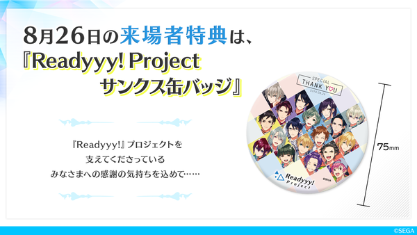 ・来場特典『Readyyy! Project』サンクス缶バッジ、スマホゲーム主題歌CD(Short Ver.)