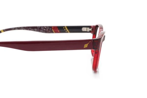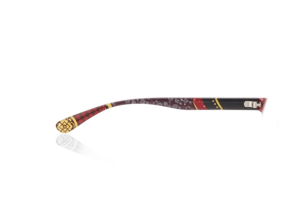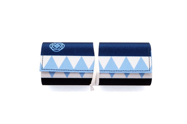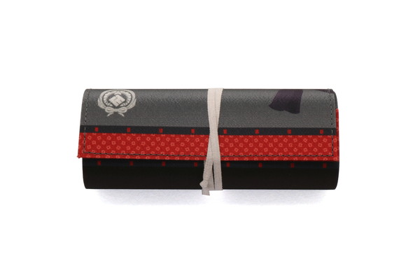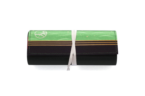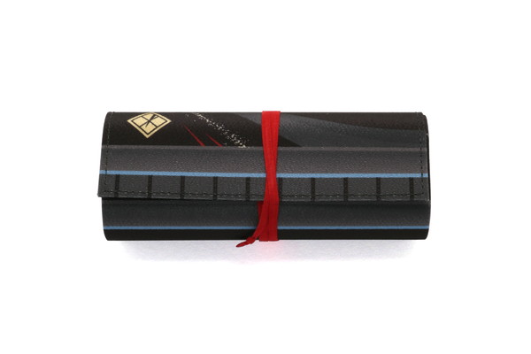 メガネの型は使いやすいウエリントンタイプとスクエアタイプ。フレームは各キャラクターの象徴となるカラーを採用することで、それぞれの個性を忠実に再現。テンプル(メガネのつる)エンドには、キャラクターの紋をあしらうなど細部にまでこだわってつくられている。 巻物状にデザインされた特製のオリジナルケースと専用のセリートも必見!