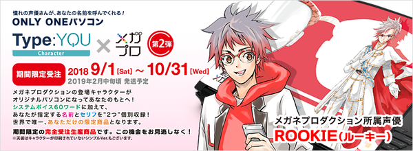 第2弾は、空気の読めないド天然キャラでスマホゲームが大好きすぎる「ROOKIE(ルーキー)」。これまでの声優パソコン同様、顧客が注文時に指定するオリジナルセリフ2つの個別収録も。