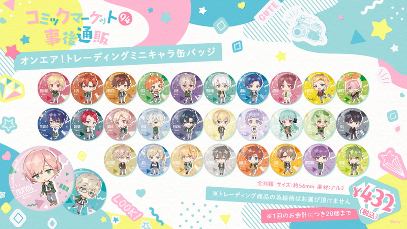 さらに、C94で発売されたミニキャラ缶バッジをはじめとする一部商品の事後通販もスタート。詳しくはcolyストア公式サイトを確認しよう。