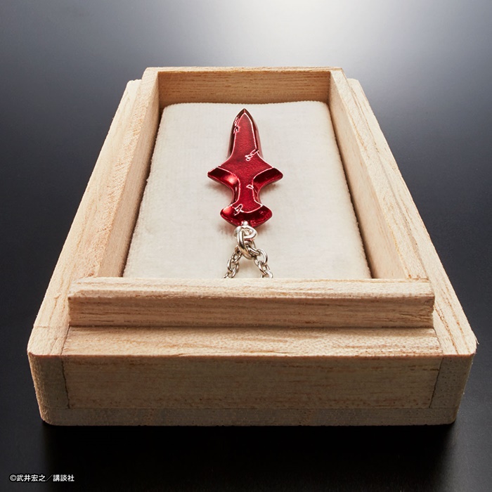 ハオの弟、麻倉葉が巫力によって霊を具現化させる技術”オーバーソウル”の媒介の一つとして使用していた石剣をモチーフとしたペンダント/ピアス/イヤリング。石剣に刻まれた数多の傷を造型で再現されている。シルバー素材を贅沢にクリアレッドで塗装し、さらに桐の箱も付属した高級感のある一品だ。