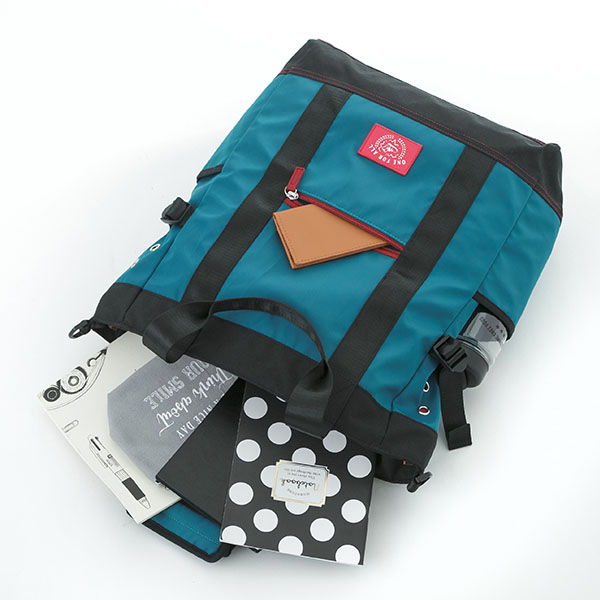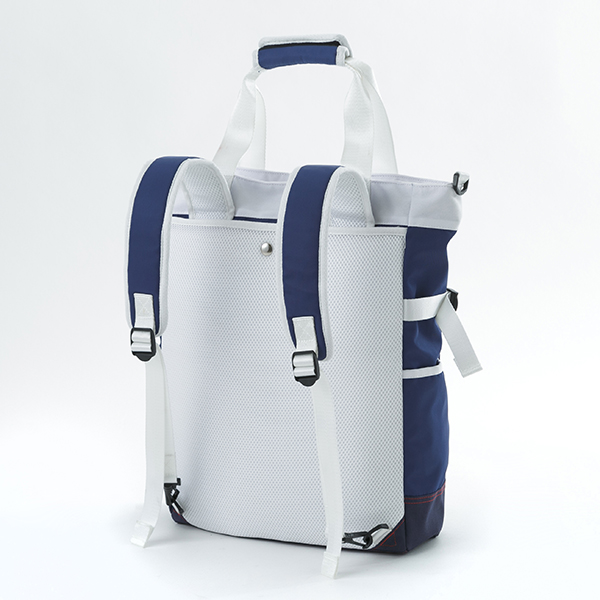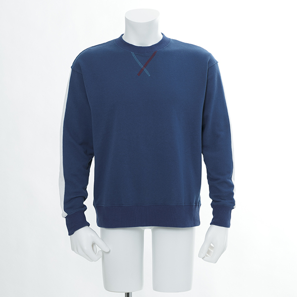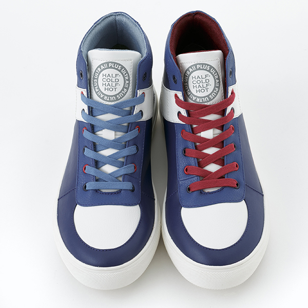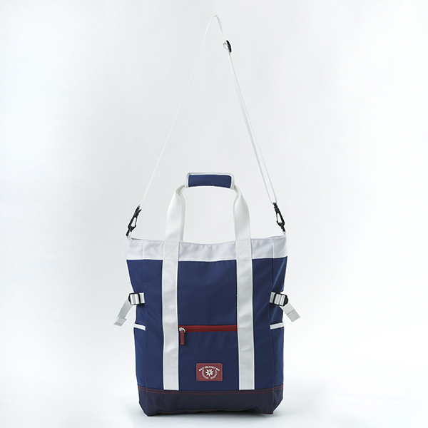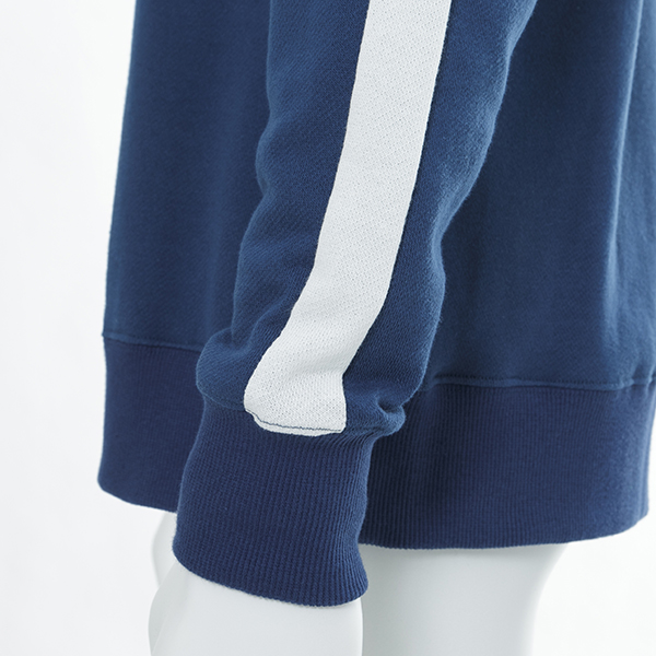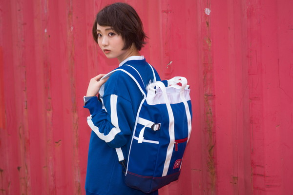 ブルーのトップスにリュックを合わせたら轟のヒーローコスチュームみたい! トップスの首元のステッチや、スニーカーのシューレース&インソールがライトブルーとレッドの左右色違いになっているのもポイント。