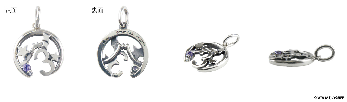 東堂の異名「山神」をイメージしたデザインのペンダントトップ。カチューシャ型の形状に、ゼッケン番号「3」と、ファンクラブを有する彼のアイドル性をイメージし、星を散りばめました。またストーンは、瞳や髪の色をイメージしたパープルと、カチューシャの白をイメージしたクリアの2色をセットにしています。