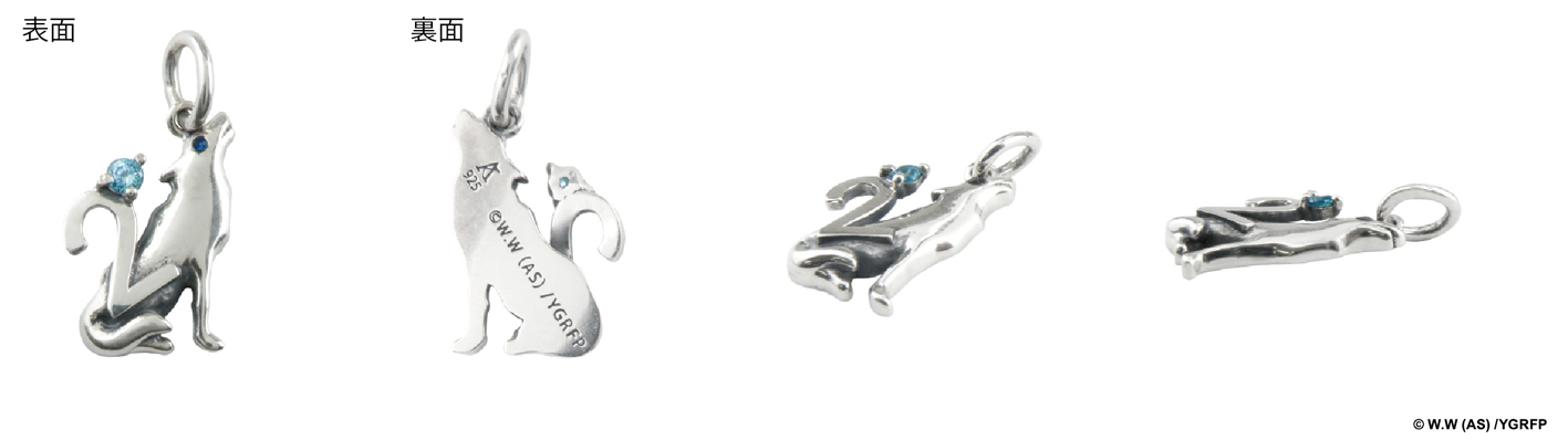 荒北の走り・猛る狼をイメージしたデザインのペンダントトップ。狼の目は荒北の瞳をイメージしたストーンを、ゼッケン番号「2」には愛用しているロードバイク、ビアンキ「チェレステ」をイメージしたブルーの2色のストーンをセットにしました。