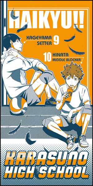 体育館の裏口に座って、ひと休みしている日向と影山の様子を描き下ろしたバスタオルです。