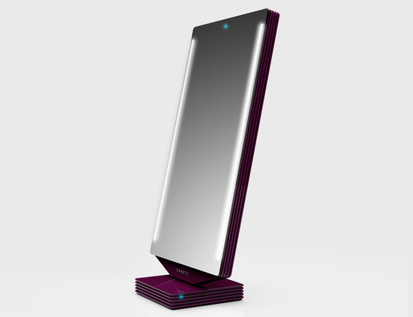 デザインは、 ボタンやスピーカー孔などの機能形状を目立たせず、 基本造形を強調してスタイリッシュな印象が表現されている。また、ミラー部と台座部の二つの構造体各々に、精巧な印象を感じさせるスリット形状を与え、造形の関連性を持たせてモダンな印象となっている。CMF(Color Material Finish)によって、ガジェットを超える美しさに挑戦し、高品質さを付加したとのこと。