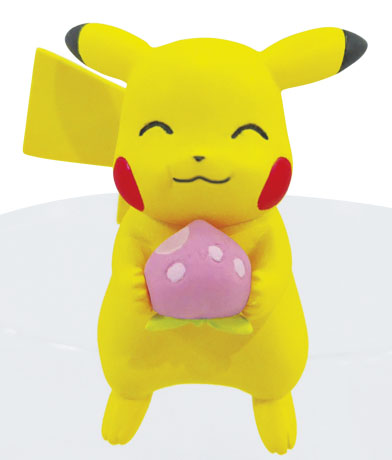 ラインナップは通常ポーズ2種の他に、きのみを持って大満足な表情の“ピカチュウときのみ”と“イーブイときのみ”、見ているだけで癒やされる“おひるねピカチュウ”と“おひるねイーブイ”の6種だ。