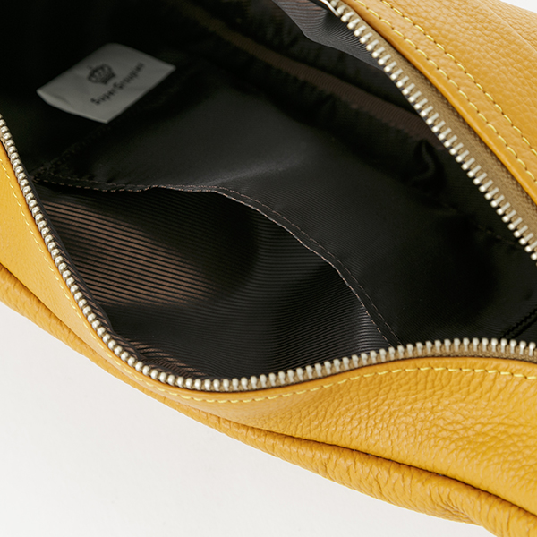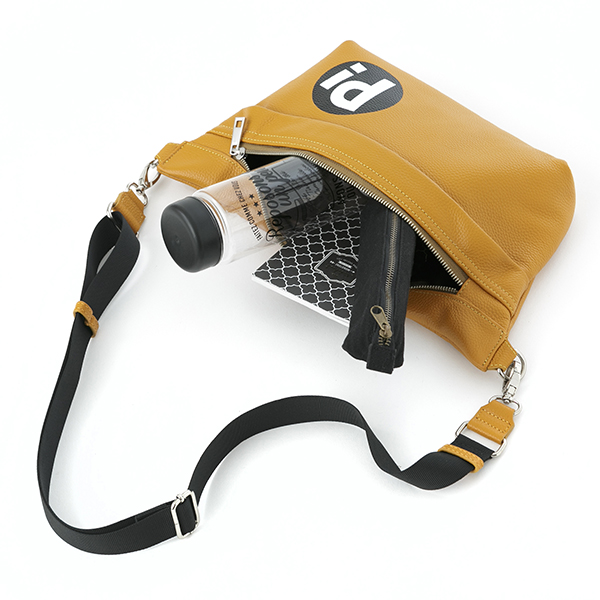 イタリアンイエローがパッと目を引くボディバッグ。愛車のVespaのマーク“P!”がデザインされており、ブルゾンと合わせればアニメバウンドも楽しめる。