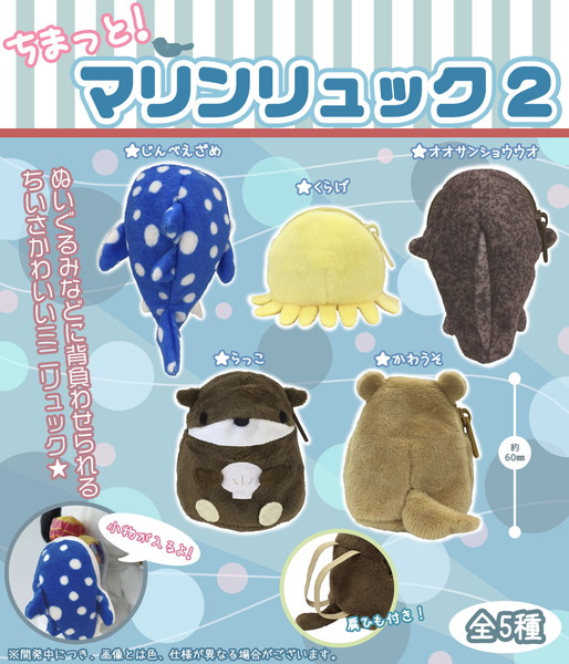 ぬいぐるみなどに背負わせて遊べる「ちまっと!ミミリュック」シリーズにマリンな生き物を再現した動物がとってもかわいい「マリンリュック」登場。大好評だった第一弾に引き続き早くも第二弾の登場です。お手持ちのぬいぐるみのお出かけのおともに。