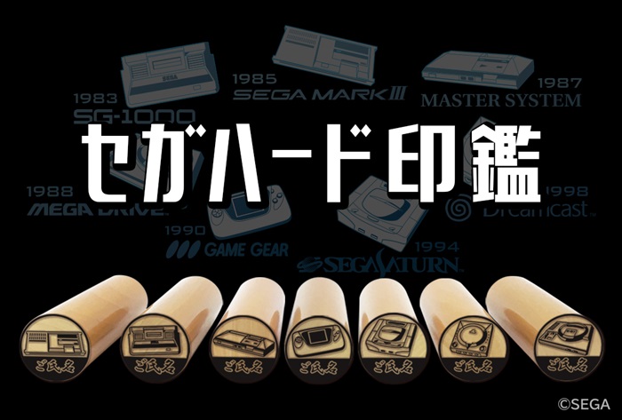 『メガドライブ』や『セガサターン』などセガの歴代ハードが痛印になって登場! 印鑑ケースや捺印マットのセットも