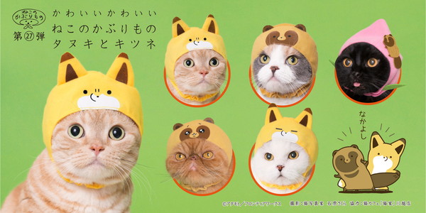 『タヌキとキツネ』と“かわいいかわいいねこのかぶりもの”の最強かわいいコラボ実現!