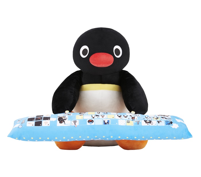 アームレストには“ピングー”はもちろん、その家族や仲間をあしらったデザインとなっている。アームレストは着脱可能で、シーンに合わせて使い分けが可能な3WAY(アームレスト着用時クッション・クッション単体・アームレスト単体)仕様だ。