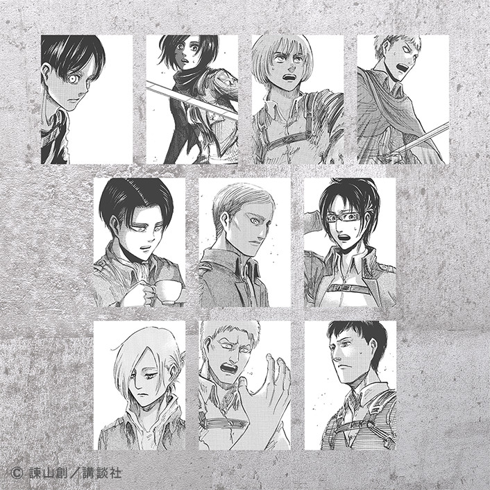 エレン、ミカサ、アルミン、ジャン、リヴァイ、エルヴィン、ハンジ、アニ、ライナー、ベルトルト