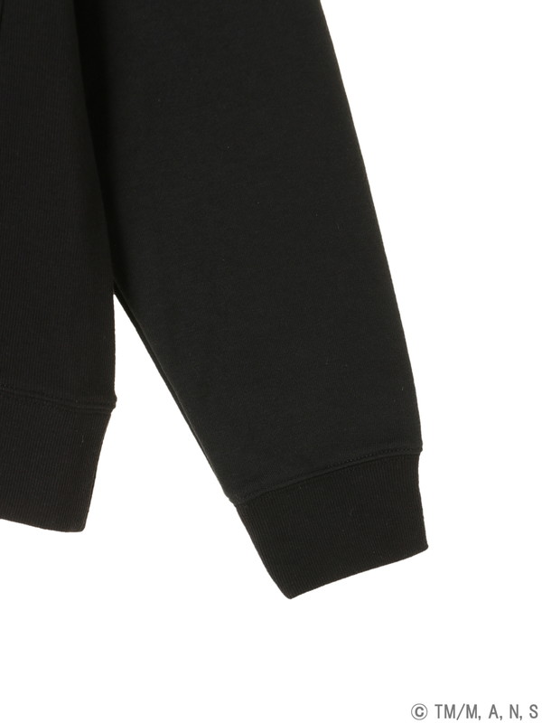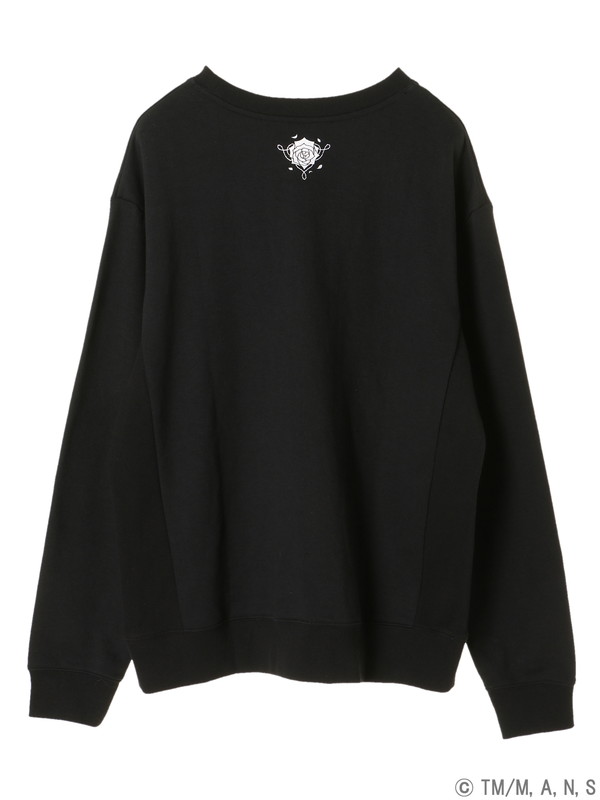 遠坂リンの衣装の胸元のクロスをロゴプリントの中に 落とし込んだプルオーバー。ユニセックスサイズが用意されている。クロス上部のドット部分はシルバーのスタッズを圧着し、さりげないポイントに。後ろにはタイトルロゴの薔薇がシルバー箔でプリント。身頃のサイドはリブ素材で切り替え、こなれ感をプラス。シンプルながらもコーデの主役として活躍してくれる、おすすめのアイテムだ。