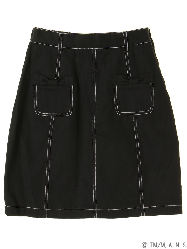 遠坂リンをイメージしたリボン付きのポケットが可愛いブラックのタイトスカート。フロントフラットのウエストは全体のシルエットをスッキリ魅せてくれ、バックゴムシャーリングで快適な穿き心地。配色ステッチもポイントになっていry。M、Lの2サイズ。