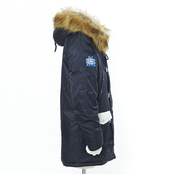 N-3Bはボア仕様のフードが暖かさ抜群! パスケースは戦車モチーフ