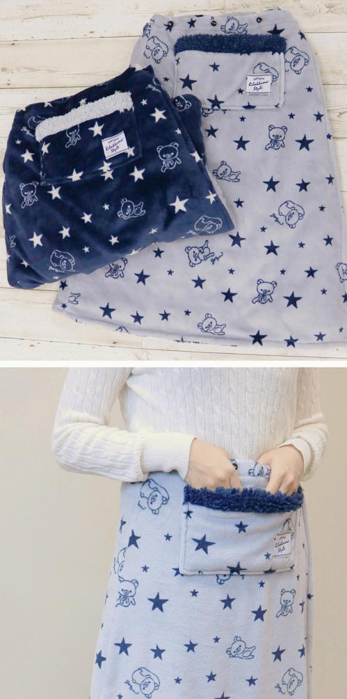 こちらは腰にまける便利なブランケット。ポケットに手をいれればぬくぬくしあわせ気分。