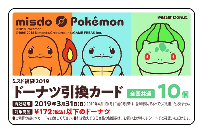 ミスタードーナツは、11月16日(金)に発売された『ポケットモンスター Let’s Go! ピカチュウ・Let’s Go! イーブイ』とコラボレーションし、5ヵ月連続で様々な商品・グッズを発売する“ミスドでポケモンに会おう!”キャンペーンを実施中。12月26日(水)からは“ミスド福袋2019”を各ショップで順次発売する。