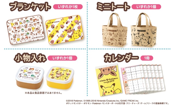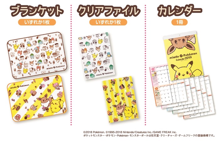 この度発売される“ミスド福袋2019”は、クリスマスに続き、ドーナツの“ふんわり感”や”もっちり感”をイメージしてデザインされたポケモンやドーナツが“ブランケット”、“クリアファイル”、“ミニトート”、“小物入れ”、“カレンダー”の福袋グッズとして登場。毎年人気の、1,080円(税込)、2,160円(税込)の福袋に加え、今年は3,240円(税込)の福箱も登場する。