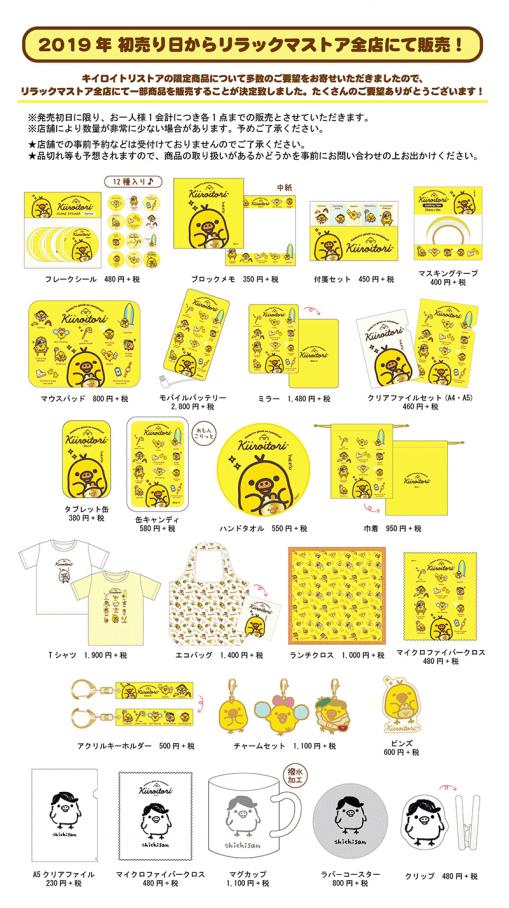 2019年初売り日からリラックマストア全店にて一部商品を販売することが決定した。