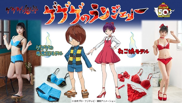 アニメ放送50周年となった『ゲゲゲの鬼太郎』より、主人公・鬼太郎と、人気キャラクターねこ娘の着用服をイメージした女性向け下着『ゲゲゲのランジェリー』の予約受付が、12月11日(火)11時にスタートした。