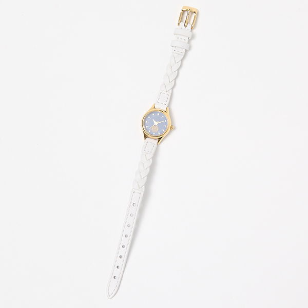 編み上げベルトが可愛らしいデザイン。髪色と服装をイメージしたホワイト×ネイビーのカラーリングがシンプルな仕上がりになっている。