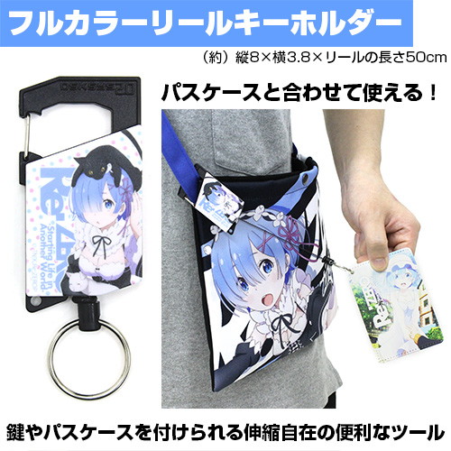 サコッシュ、パスケース、リールキーホルダーに、それぞれレムの色々な可愛さが表現されたアイテム。こちらは12月29日から31日開催のコミックマーケット95内二次元コスパブース(No.4214)にて先行販売が決定。会場で身に着ければ、レムと一緒にイベントを楽しめる! もちろんちょっとした”おでかけ”や、サコッシュはサブバッグとしても活躍するので、普段からレムの笑顔を見ていられるアイテムだ。