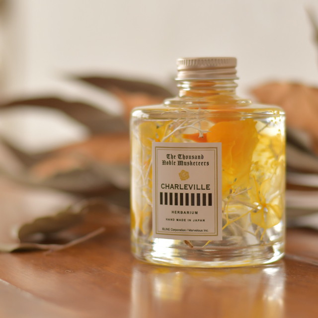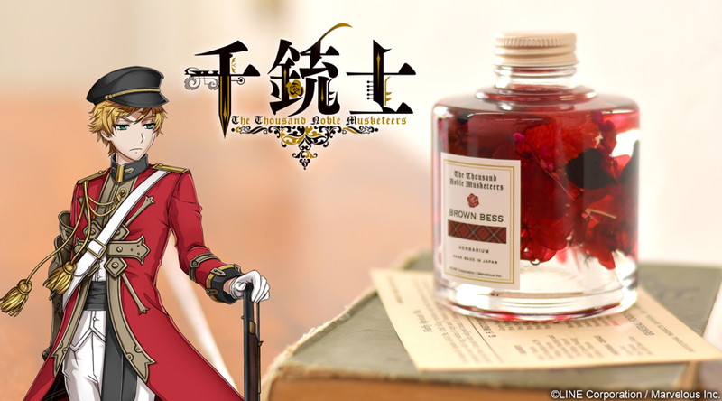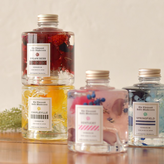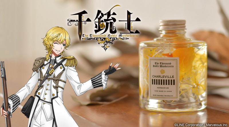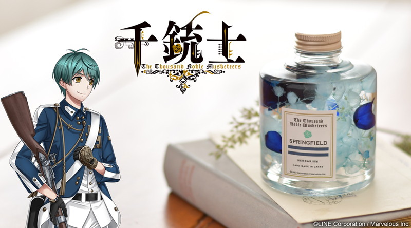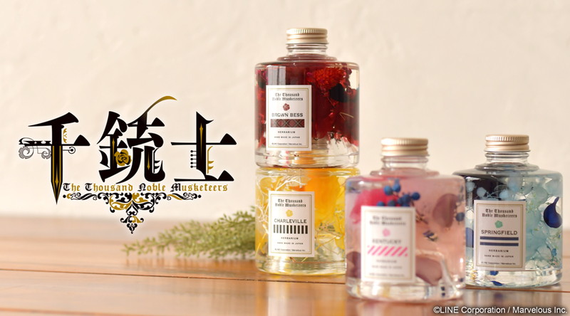 スマートフォンアプリ『千銃士』より、ブラウン・ベス、シャルルヴィル、スプリングフィールド、ケンタッキーの4人の貴銃士をイメージしたハーバリウム (植物標本)が、完全受注生産で販売される。