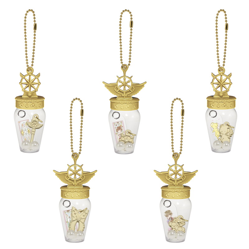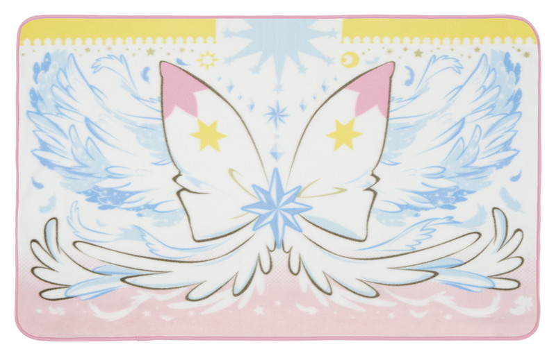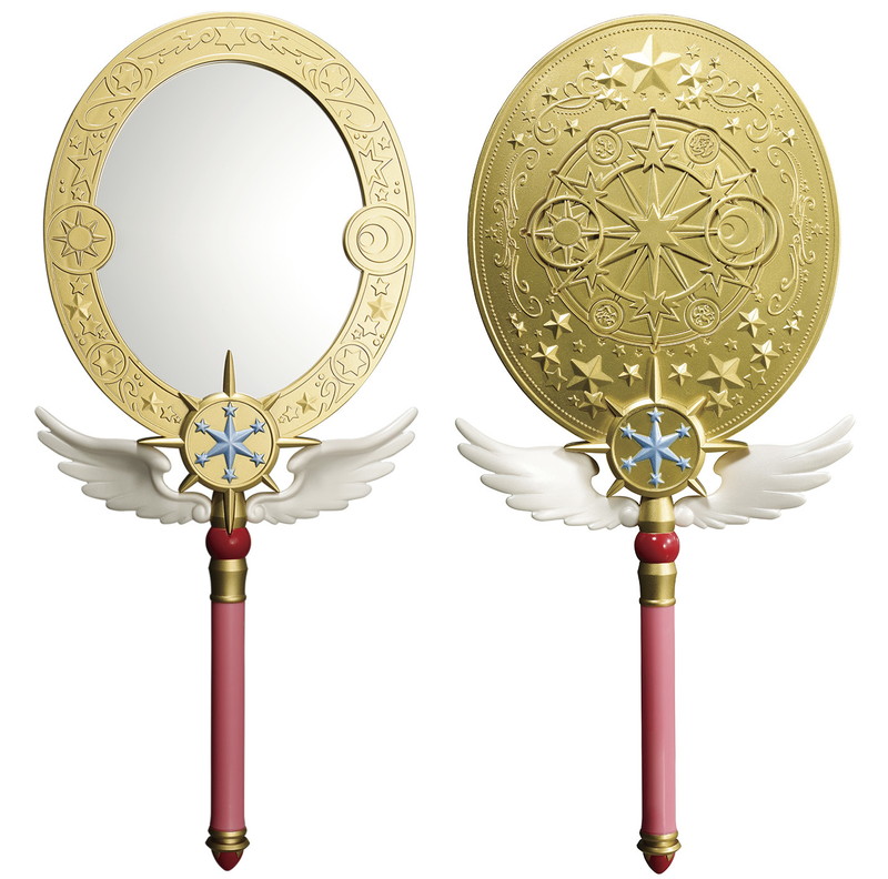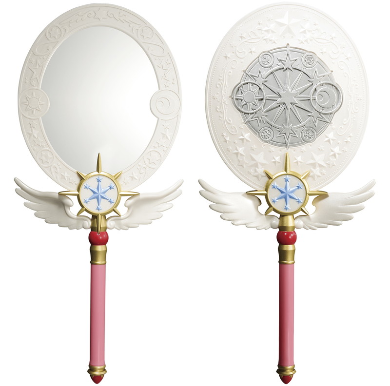 主人公のさくらちゃんが使用する魔法アイテム“夢の杖”をデザインした約30cmのミラーをはじめ、肩から羽織るとクリアカードの精霊“飛翔(フライト)”をまとっているようなデザインのブランケット、さくらちゃんと小狼くんがお互いに手作りして交換した、ピンクとグレーの“おもいでのくまさん”に扮したケロちゃんとスッピーのマスコットぬいぐるみ。その他、オリジナルアートを使用したノートとクリアファイルのセットやハンドタオルなどの実用雑貨、魔法アイテムモチーフのカバンにつけてもかわいいボトルチャームやアクリルチャームなど、使って楽しい飾ってかわいいラインナップとなっている。