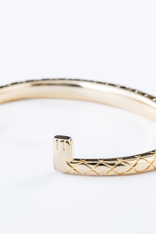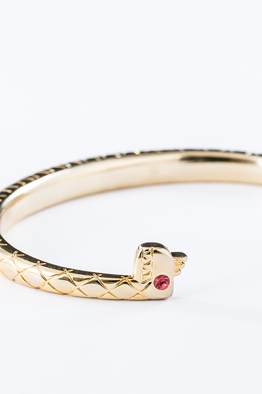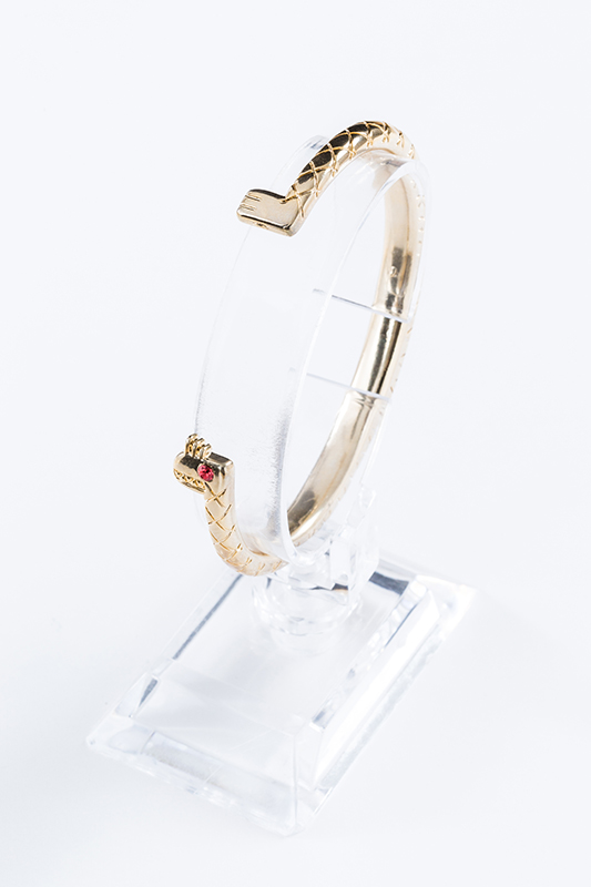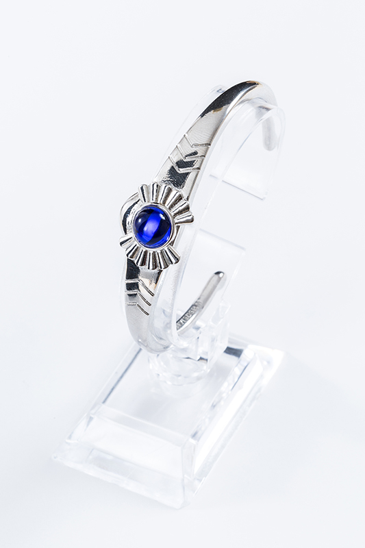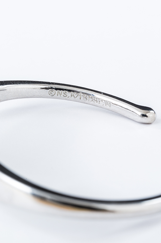 バングルだけでも、腕時計と重ね付けしてもおしゃれなバングルは、さりげなくそれぞれの武器などをイメージしました。ゴージャスなゴールドやシルバーは一見華やかに見えますが肌馴染みもよく、服装やシーンを選びません。