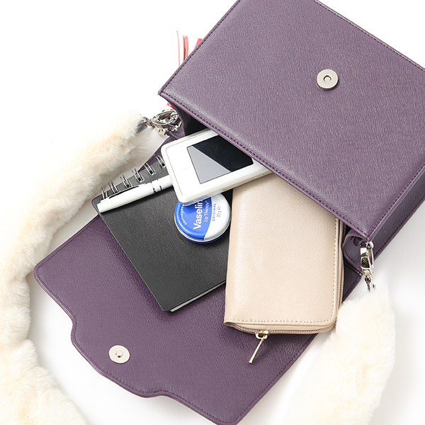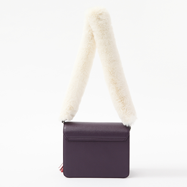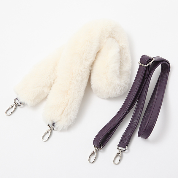 殺生丸の肩のファーのようなショルダーストラップがついたバッグ。シンプルなストラップの2本セットなので、気分に合わせて使い分けていただけます。モノトーンコーデにファーストラップのバッグをあわせればコーディネート完成!
