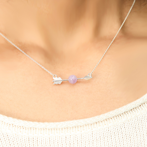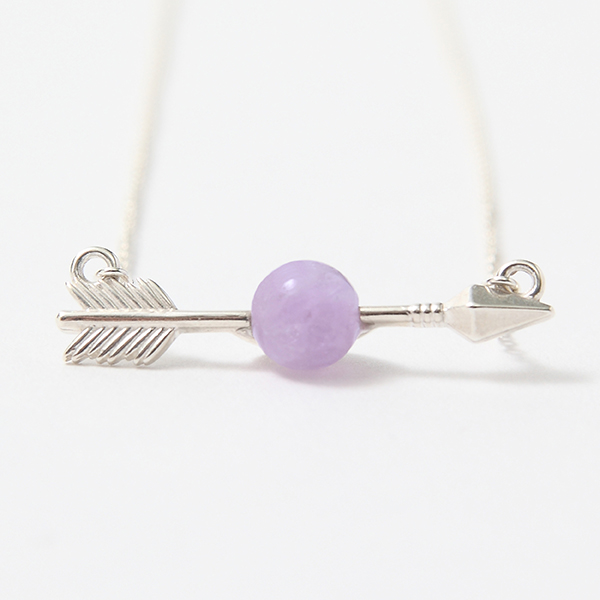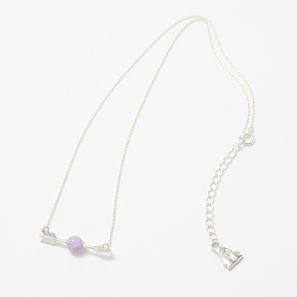 矢に打ち抜かれている四魂の玉を再現したトップのネックレス。クラックが施された紫の水晶玉はまさに四魂の玉のよう! 1つ1つ違う天然石なので、身につける人によって違う表情を見せてくれる。