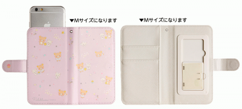 もこもこパジャマを着たリラックマ、コリラックマ、キイロイトリがいるデザイン☆表面はPUレザーを使用♪内側はシンプルなホワイト。