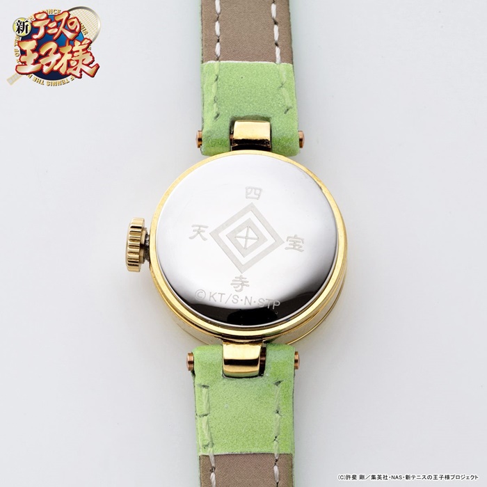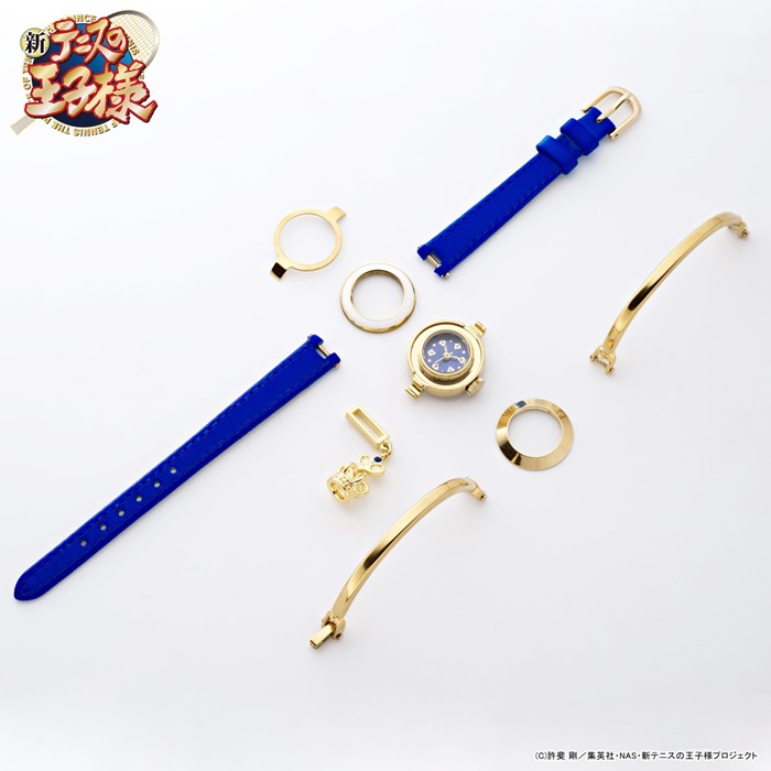 本商品は、アニメ『新テニスの王子様』にて作中に登場する、青春学園中等部、氷帝学園中等部、立海大附属中学校、比嘉中学校、四天宝寺中学校の全5校それぞれをイメージした腕時計で、その日の気分や服装に合わせてベルトやベゼルを自由に組み合わせることができるチェンジャブルウォッチ。それぞれのイメージカラーやモチーフの時計本体に加え、ベルト2種、文字盤回りのベゼル2種、チャームをセットで用意。