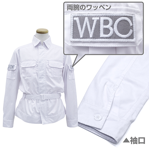 両腕・両胸には、設定に合わせてポケットを。両腕には“WBC(White blood cell)”のワッペンが。腰にはキュットしまった姿が印象的なベルトが付属している。