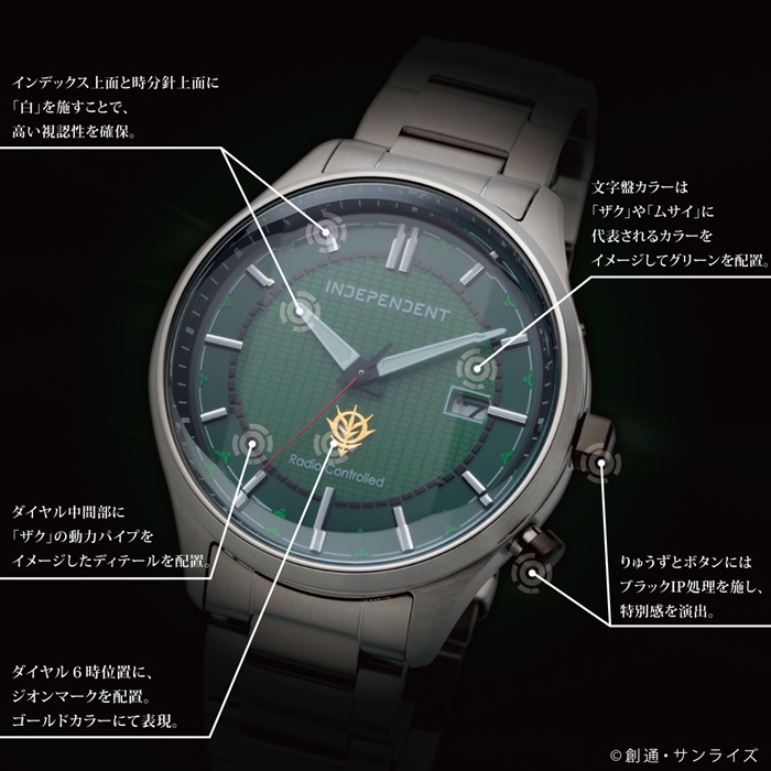 本商品は、アニメ『機動戦士ガンダム』の公開40周年を記念した、『INDEPENDENT(インディペンデント)』とのコラボレーションウォッチ。独創的なテイスト・デザインの『INDEPENDENT』をベースに、“シャアモデル”、“ジオンモデル”の全2種の展開となる。