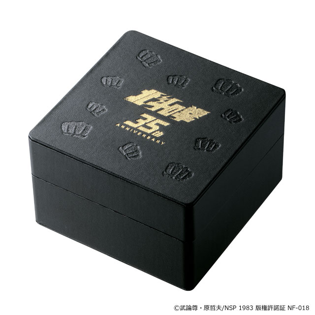 ウォッチは35周年ロゴとケンシロウの拳形があしらわれた特製記念ボックスに収めて配送される。