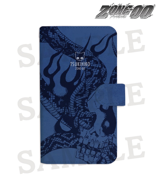 月彦の刺青を全面にプリントし、ぬいぐるみのモチーフをワンポイントとしたデザイン。スマートフォンが上下に移動するスライド式なので、iPhoneにもAndroidにも使用可能だ。