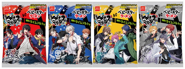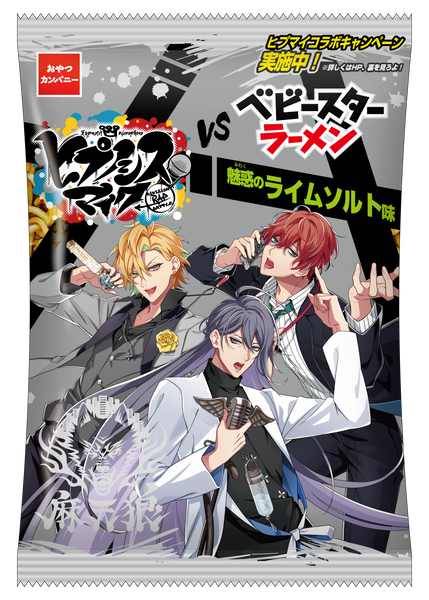 ベビースターラーメン(魅惑のライムソルト味)が、作中に登場する各ディビジョンのパッケージで登場!『ベビースター』と『ヒプノシスマイク』の世界観の融合をお楽しみください。