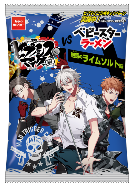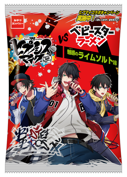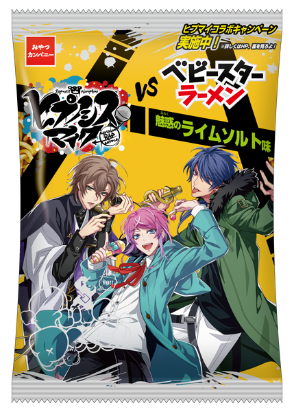 『ヒプノシスマイク-Division Rap Battle-』とのコラボレーション商品「ヒプノシスマイクvsベビースターラーメン(魅惑のライムソルト味)」を、2019年3月18日より企画限定商品として、全国にて発売する。